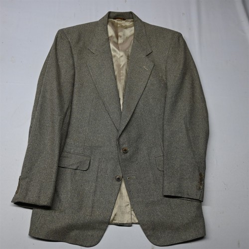 Gold/brown/blue-green nailshead soft tweed. Corbin Blazer- Size 42 Regular. 2 button blazer: notched lapel, single vent.