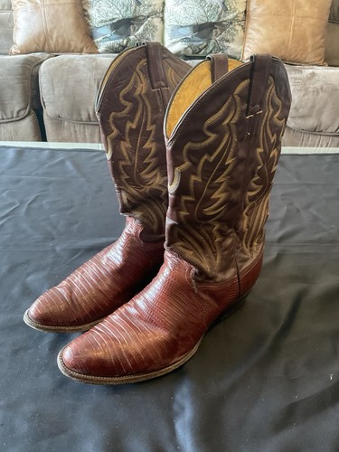 Vintage JUSTIN Leather Western Lizard Cowboy Boots Men’s 12D USA made in good condition
