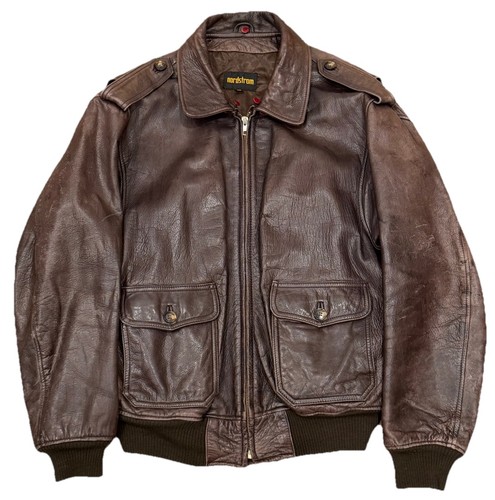 Minor wear shown! The bomber jacket features a full zip closure, lined interior with nylon and polyester insulation, and multiple pockets for convenience.