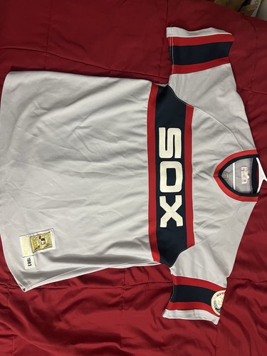 Authentic Mitchell & Ness Nostalgia Co. Chicago White Sox (SOX) throwback baseball jersey, inspired by the 1983 season. This is a high-quality vintage-style jersey featuring: • Classic SOX front lettering • 1983 commemorative patch detail • Heavy mesh construction • Traditional Mitchell & Ness craftsmanship Condition: Very good pre-owned condition. No holes or major flaws. Light normal wear consistent with age. Please review photos carefully. Size: Size tag is missing. Please refer to measurements below to ensure proper fit.