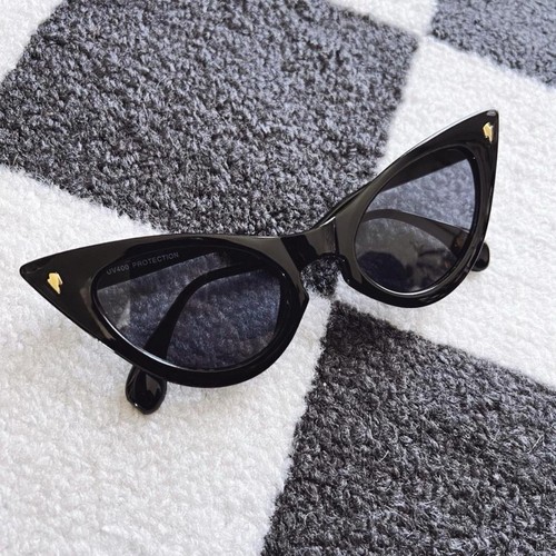Vintage Style Cat Eye Sunglasses Vintage style cat eye sunglasses featuring gold lightening bolt detailing • UV400 protection • 6.5” x 2” • gold hardware • black frame #vintage #cateye #retro #50s #pinup retro, rockabilly, 50s, 1950s, cateye sunglasses, retro sunglasses, vintage sunglasses,