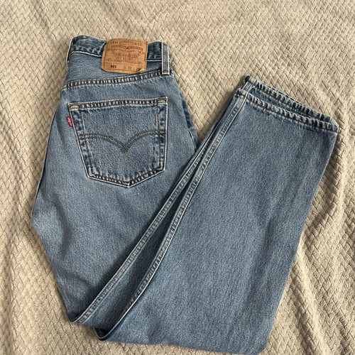 Vintage 90s 501 Blue Denim Jeans USA 32x29 Button Fly SEE MEASUREMENTS