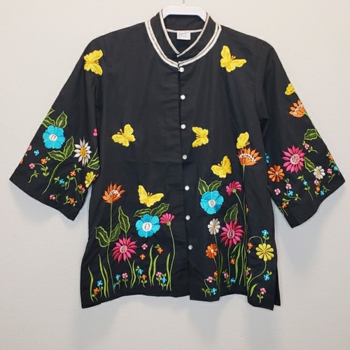 Vintage Joycelyn's California Floral Embroidered Top Women's Size 12. Measurements approximately 25 inches from shoulder to hem and 20 inches across the chest under arm to under arm. Used in good vintage condition. See photos for details .
