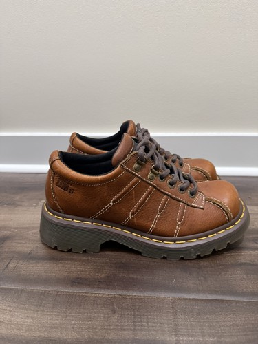 The Dr. Martens 9764 chunky brown leather shoes are a vintage Y2K style Oxford shoe designed for women in size 6 (UK size 5). Made of durable leather with a rubber outsole, these lace-up shoes feature a low heel height and soft toe for added comfort. Perfect for travel, activewear, casual outings, or workwear, these versatile shoes are suitable for all seasons and offer a classic solid brown color with a standard shoe width. With the iconic Dr. Martens brand and quality construction, these shoes are a stylish and practical choice for everyday wear.