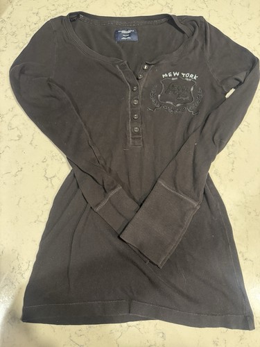 Super cute Y2K staple piece. Casual long-sleeve henley with button placket. Crew neckline and simple silhouette. Soft everyday layering piece. Still in her prime 💖