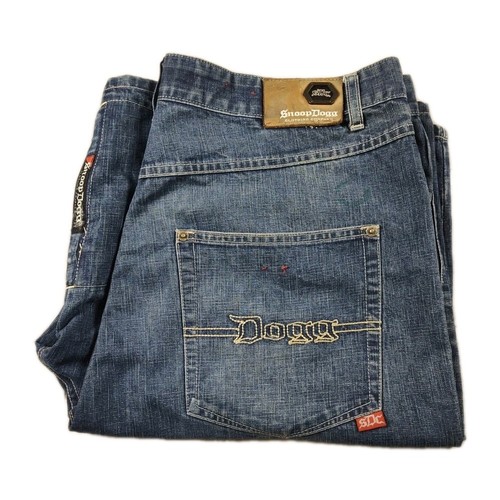 This Vintage Snoop Dogg Clothing Shorts for men in size 38 is a nostalgic piece of 90s streetwear. The baggy skater style features embroidered logos and a high-rise waist, perfect for a casual summer or spring look. Made from denim fabric with a medium wash, these shorts have a relaxed fit and come in a solid blue color. With a 5-pocket design and button closure, these shorts are both stylish and practical, representing the iconic Snoop Dogg Clothing Company brand. Machine washable and made from cotton, these shorts have a unique blend of retro style and modern comfort.