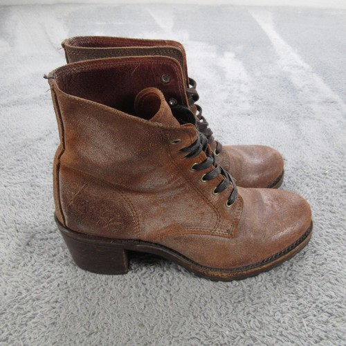 Style: lace-up combat boots with round toes, mid-height shafts, and block heels.