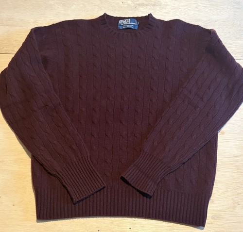 VTG 100% Cashmere Cable Knit Crewneck Sweater Men M Maroon SEE DESC