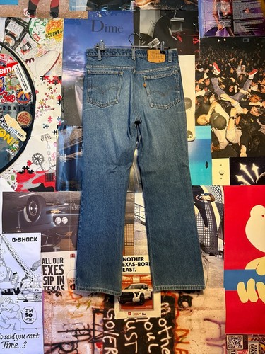Vintage Levi’s 517 orange tab bootcut jeans in a classic medium blue wash. Made in USA pair with a nice clean straight-to-bootcut leg, small e orange tab, and strong everyday vintage Levi’s look. Solid wearable wash with natural fading and a good broken-in feel without being too blown out. Patch shows tagged size 34x32, though the inner tag appears to read differently, so best to include measurements in the listing for accuracy. Size: Tagged 34x32 Condition: Good vintage condition with normal wear Hashtags: #levis517 #orangetab #madeinusa #vintagelevis #bootcutjeans